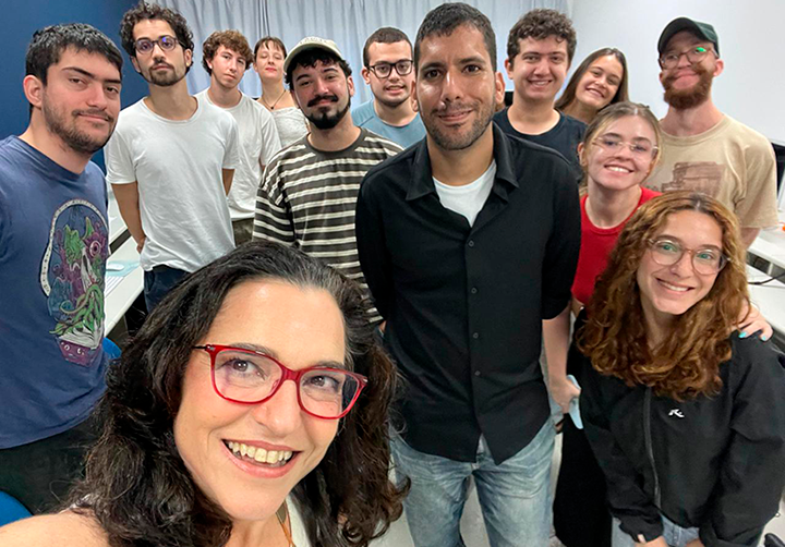 Lohan Costa discute o processo de pós produção com alunos do DCOM. Foto: Marcia Antabi.
